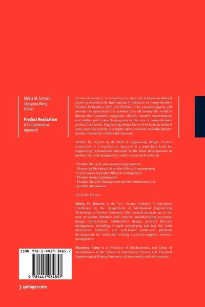 Product Realization: A Comprehensive Approach is based on selected papers presented at the International Conference on Comprehensive Product Realization 2007 (ICCPR2007). The extended papers will provide the opportunity for scholars from all around the world to discuss their academic programs, identify research opportunities, and initiate joint research programs in the area of comprehensive product realization. Engineering design has evolved from an isolated semi-empirical activity to a highly interconnected, multidisciplinary product realization collaborative process.