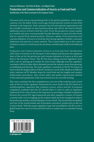 Production and Commercialization of Insects as Food and Feed: identification of the Main Constraints in the European Union analyses and discusses theregulatory state-of-the-art for the production and commercialization of insects as food and feed in the European Union. The EU has been taking concrete legislative steps with a view to opening up its market for insect foods, although some key regulatory constraints still exist today which ultimately prevent the industry sector from growing, consolidating and thriving. The main regulatory constraints in the EU for insects as food include the fragmentation of the EU market as a result of the adoption of different policy solutions by EU Member States for novel foods and the lengthy and complex authorization procedures. Also, ad hoc safety and quality requirements tailored to the needs and specificities of the insect food sector are currently missing.