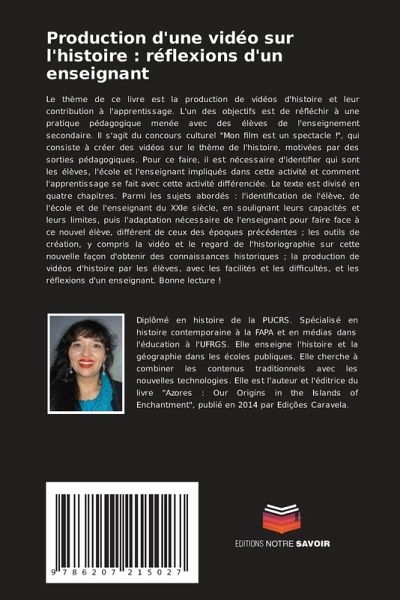 Le thème de ce livre est la production de vidéos d'histoire et leur contribution à l'apprentissage. L'un des objectifs est de réfléchir à une pratique pédagogique menée avec des élèves de l'enseignement secondaire. Il s'agit du concours culturel "Mon film est un spectacle !", qui consiste à créer des vidéos sur le thème de l'histoire, motivées par des sorties pédagogiques. Pour ce faire, il est nécessaire d'identifier qui sont les élèves, l'école et l'enseignant impliqués dans cette activité et comment l'apprentissage se fait avec cette activité différenciée. Le texte est divisé en quatre chapitres. Parmi les sujets abordés : l'identification de l'élève, de l'école et de l'enseignant du XXIe siècle, en soulignant leurs capacités et leurs limites, puis l'adaptation nécessaire de l'enseignant pour faire face à ce nouvel élève, différent de ceux des époques précédentes ; les outils de création, y compris la vidéo et le regard de l'historiographie sur cette nouvelle façon d'obtenir des connaissances historiques ; la production de vidéos d'histoire par les élèves, avec les facilités et les difficultés, et les réflexions d'un enseignant. Bonne lecture !