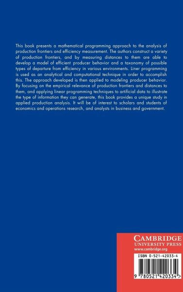 This book presents a mathematical programming approach to the analysis of production frontiers and efficiency measurement. The authors construct a variety of production frontiers, and by measuring distances to them are able to develop a model of efficient producer behaviour and a taxonomy of possible types of departure from efficiency in various environments. Linear programming is used as an analytical and computational technique in order to accomplish this. The approach developed is then applied to modelling producer behaviour. By focussing on the empirical relevance of production frontiers and distances to them, and applying linear programming techniques to artificial data to illustrate the type of information they can generate, this book provides a unique study in applied production analysis. It will be of interest to scholars and students of economics and operations research, and analysts in business and government.