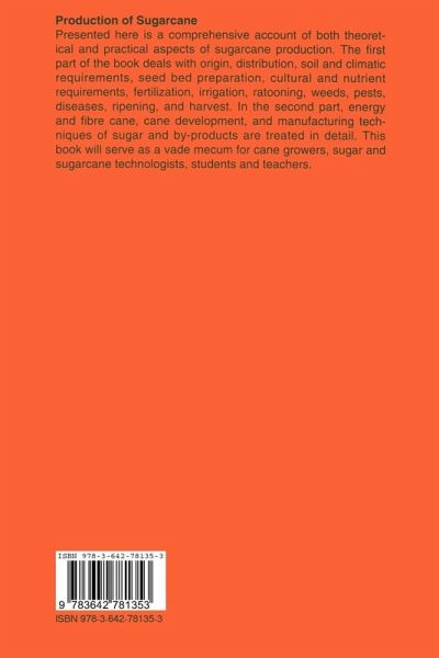 Presented here is a comprehensive account of boththeoretical and practical aspects of sugarcane production.The first of two parts of the book deals with origin,distribution, soil and climatic requirements, seed bedpreparation, cultural and nutrient requirements,fertilization, irrigation, ratooning, weeds, pests,diseases, ripening, and harvest. In thesecond part, energyand fibre cane, cane development, and manufacturingtechniques of sugar and by-products are treated in detail.This book will serve as a vademecum for cane growers, sugarand sugarcane technologists, students and teachers.