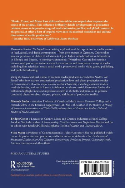 "Banks, Conor, and Mayer have delivered one of the rare sequels that surpasses the vision of the original. This collection brilliantly details developments in production cultures across an impressive range of media industries, publics, and global contexts. In the process, it offers a host of inspired views into the material conditions and cultural dimensions of media production." -Jennifer Holt, University of California, Santa Barbara