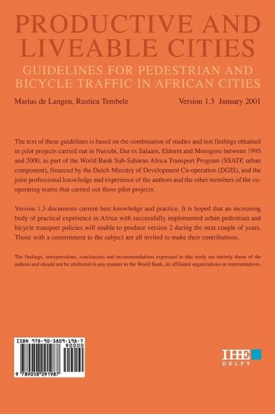 This study offers guidelines for pedestrian and bicycle traffic in African cities. The text is based on the combination of studies and test findings obtained in pilot projects carried out in Nairobi, Dar es Salaam, Eldoret and Morogoro between 1995 and 2000.