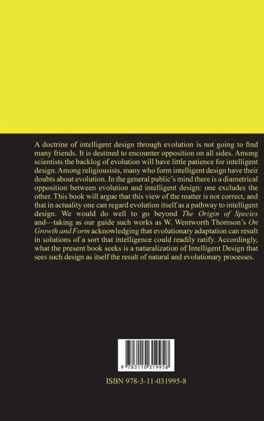A doctrine of intelligent design through evolution is not going to find many friends. It is destined to encounter opposition on all sides. Among scientists the backlog of evolution will have little patience for intelligent design. Among religiousists, many who form intelligent design have their doubts about evolution. In the general public's mind there is a diametrical opposition between evolution and intelligent design: one excludes the other. This book will argue that this view of the matter is not correct, and that in actuality one can regard evolution itself as a pathway to intelligent design. We would do well to go beyond The Origin of Species and-taking as our guide such works as W. Wentworth Thomson's On Growth and Form acknowledging that evolutionary adaptation can result in solutions of a sort that intelligence could readily ratify. Accordingly, what the present book seeks is a naturalization of Intelligent Design that sees such design as itself the result of naturaland evolutionary processes.