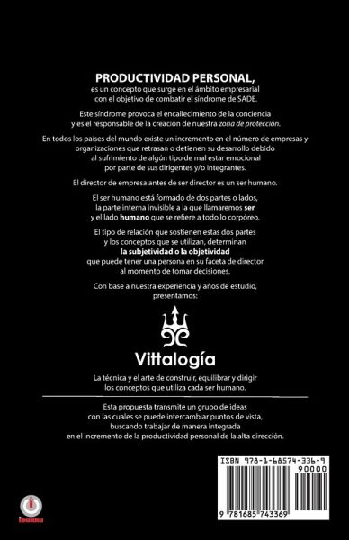 PRODUCTIVIDAD PERSONAL, es un concepto que surge en el ámbito empresarialcon el objetivo de combatir el síndrome de SADE.Este síndrome provoca el encallecimiento de la concienciay es el responsable de la creación de nuestra zona de protección.En todos los países del mundo existe un incremento en el número de empresas yorganizaciones que retrasan o detienen su desarrollo debidoal sufrimiento de algún tipo de mal estar emocionalpor parte de sus dirigentes y/o integrantes.El director de empresa antes de ser director es un ser humano.El ser humano está formado de dos partes o lados, la parte interna invisible a la que llamaremos sery el lado humano que se re ere a todo lo corpóreo.El tipo de relación que sostienen estas dos partesy los conceptos que se utilizan, determinanla subjetividad o la objetividadque puede tener una persona en su faceta de directoral momento de tomar decisiones.Con base a nuestra experiencia y años de estudio,