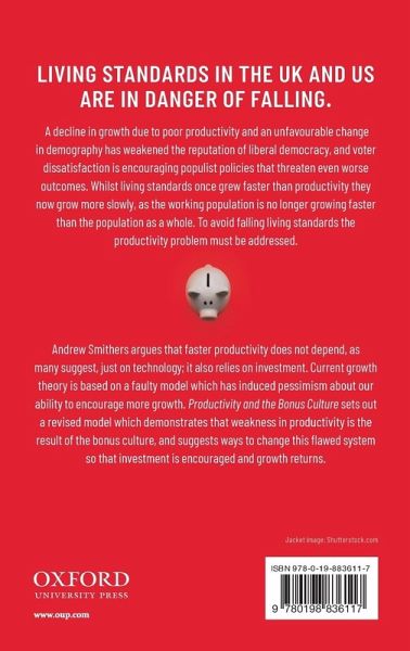 Living standards in the UK and US are in danger of falling. A decline in growth due to poor productivity and an unfavourable change in demography has weakened the stand of liberal democracy, and voter dissatisfaction is encouraging populist policies that threaten even worse outcomes. Whilst living standards once grew faster than productivity they now grow more slowly, and the working population is no longer growing faster than the population as a whole. To avoid falling living standards the productivity problem must be addressed. Andrew Smithers argues that faster productivity does not depend, as many suggest, on technology; it also relies on investment. Current growth theory is based on a faulty model which has induced pessimism about our ability to encourage more growth. Productivity and the Bonus Culture sets out a revised model which demonstrates that weakness in productivity is the result of the bonus culture, and suggests ways to change this flawed system so that investment is encouraged and growth returns.