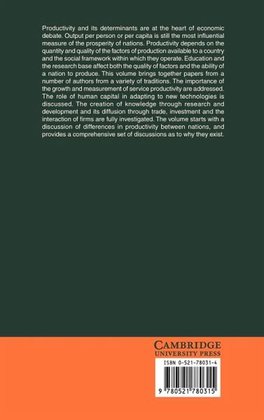 Productivity and its determinants is a prominent feature in economic debate. Output per person or per capita is still the most influential measure of the prosperity of nations. Productivity depends on the quantity and quality of the factors of production available to a country and the social framework within which they operate. Education and the research base affect both the quality of factors and the ability of a nation to produce. This volume examines differences in productivity between nations, and provides comprehensive discussion as to why such differences exist; it addresses the importance of the growth and measurement of service productivity, and studies the role of human capital in adapting to new technologies. The creation of knowledge through research and development and its diffusion through trade, investment and the interaction of firms are also fully investigated.