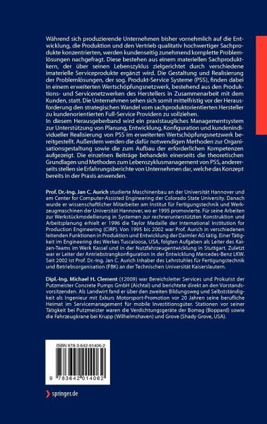 Prof. Dr.-Ing. Jan C. Aurich studierte Maschinenbau an der Universität Hannover und am Center for Computer-Assisted Engineering der Colorado State University. Danach wurde er wissenschaftlicher Mitarbeiter am Institut für Fertigungstechnik und Werkzeugmaschinen der Universität Hannover, wo er 1995 promovierte. Für seine Arbeiten zur Werkstückmodellierung in Systemen zur rechnerunterstützten Konstruktion und Arbeitsplanung erhielt er 1996 die Taylor Medaille der International Institution for Production Engineering (CIRP). Von 1995 bis 2002 war Prof. Aurich in verschiedenen leitenden Funktionen in Produktion und Entwicklung der Daimler AG tätig. Einer Tätigkeit im Engineering des Werkes Tuscaloosa, USA, folgten Aufgaben als Leiter des Kaizen-Teams im Werk Kassel und in der Nutzfahrzeugentwicklung in Stuttgart. Zuletzt war er Leiter der Antriebstrangkonfiguration in der Entwicklung Mercedes-Benz LKW. Seit 2002 ist Prof. Dr.-Ing. Jan C. Aurich Inhaber des Lehrstuhles für Fertigungstechnik und Betriebsorganisation (FBK) an der Technischen Universität Kaiserslautern. Dipl.-Ing. Michael H. Clement (+ 2009) war Bereichsleiter Services und Prokurist der Putzmeister Concrete Pumps GmbH (Aichtal) und berichtete direkt an den Vorstandsvorsitzenden. Als Landwirt fand er über den zweiten Bildungsweg und Selbstständigkeit als Ingenieur mit Exkurs Motorsport-Promotion vor 20 Jahren seine berufliche Heimat im Servicemanagement für mobile Investitionsgüter. Stationen vor seiner Tätigkeit bei Putzmeister waren die Verdichtungsgeräte der Bomag (Boppard) sowie die Fahrzeugkrane bei Krupp (Wilhelmshaven) und Grove (Shady Grove, USA).