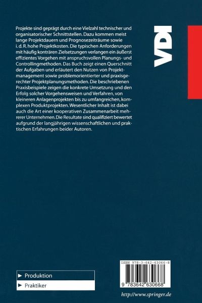 Projekte sind geprägt durch eine Vielzahl von technischen und organisatorischen Schnittstellen. Dazu kommen meist lange Projektdauern und Prognosezeiträume sowie i.d.R. hohe Projektkosten. Die typischen Anforderungen mit häufig konträren Zielsetzungen verlangen ein äußerst effizientes Vorgehen mit anspruchsvollen Planungs- und Controllingmethoden. Das Buch zeigt einen Querschnitt der Aufgaben und erläutert den Nutzen von Projektmanagement sowie problemorientierter und praxisgerechter Projektplanungsmethoden. Die beschriebenen Praxisbeispiele zeigen die konkrete Umsetzung und den Erfolg solcher Vorgehensweisen und Verfahren. Sie sind auch Ergebnis der langjährigen wissenschaftlichen und praktischen Erfahrung beider Autoren.