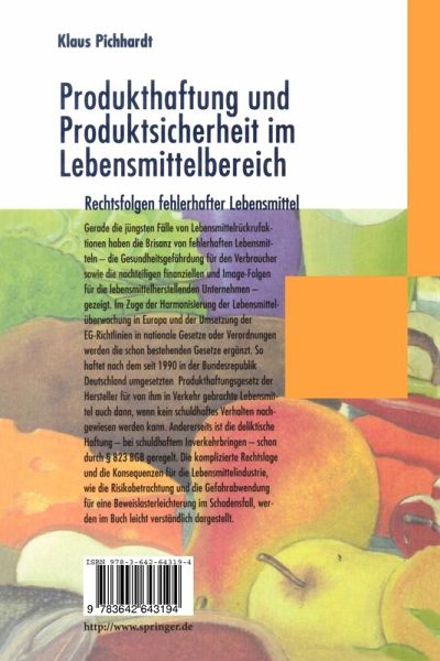 Im Zuge der Harmonisierung der Lebensmittelüberwachung in Europa und der Umsetzung der EG-Richtlinien in nationale Gesetze oder Verordnungen wurden die schon bestehenden Gesetze ergänzt. So haftet nach dem seit 1990 in der BRD umgesetzten Produkthaftungsgesetz der Hersteller für von ihm in Verkehr gebrachte Lebensmittel auch dann, wenn kein schuldhaftes Verhalten nachgewiesen werden kann. Andererseits ist die deliktische Haftung schon durch §823 BGB geregelt. Die komplizierte Rechtslage und die Konsequenzen für die Lebensmittelindustrie, wie z.B. die Gefahrabwendung oder Beweislasterleichterung, werden im Buch leicht verständlich dargestellt.