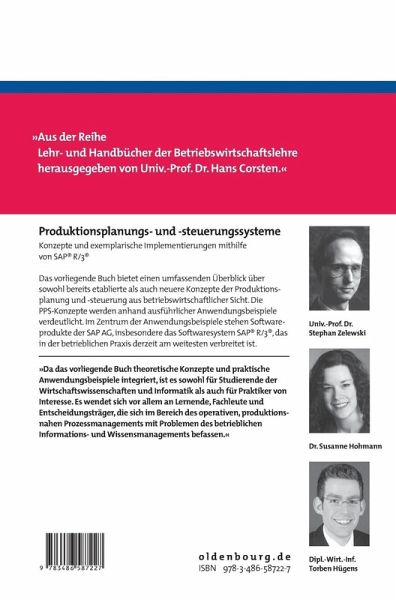 Das Buch bietet einen umfassenden Überblick über sowohl bereits etablierte als auch neuere Konzepte der Produktionsplanung und -steuerung aus betriebswirtschaftlicher Sicht. Die PPS-Konzepte werden anhand ausführlicher Anwendungsbeispiele verdeutlicht. Im Zentrum der Anwendungsbeispiele stehen Softwareprodukte der SAP AG, insbesondere das Softwaresystem SAP® R/3®, das in der betrieblichen Praxis derzeit am weitesten verbreitet ist. Da das vorliegende Buch theoretische Konzepte und praktische Anwendungsbeispielen integriert, ist es sowohl für Studierende der Wirtschaftswissenschaften und Informatik als auch für Praktiker von Interesse. Es wendet sich vor allem an Lernende, Fachleute und Entscheidungsträger, die sich im Bereich des operativen, produktionsnahen Prozessmanagements mit Problemen des betrieblichen Informations- und Wissensmanagements befassen.