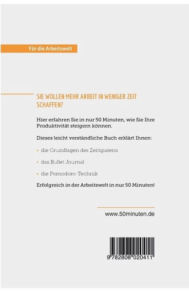 Mehr Arbeit effektiv in kürzerer Zeit erledigen ¿ in nur 50 Minuten Heutzutage gibt es eine Menge an Möglichkeiten, sich von der Arbeit abzulenken und Zeit für unnötige Tätigkeiten zu verschwenden. Gleichzeitig wird es immer wichtiger, mehr Arbeit in kürzerer Zeit zu erledigen. Sie wissen nicht, wie Sie das schaffen können? In diesem Booklet finden Sie eine ganze Reihe an nützlichen Tipps und Techniken, die Ihnen zu mehr Produktivität und Effizienz im Berufsleben verhelfen. Nach 50 Minuten können Sie: ¿ sich besser organisieren ¿ Ihre Arbeit und Ihre Zeit einteilen ¿ Stress bewältigen Starten Sie mit diesen praktischen Tipps voll durch! Über 50MINUTEN.DE Für die Arbeitswelt Was bringt Sie im Job weiter? Die Serie Für die Arbeitswelt der Reihe 50Minuten ist für alle geeignet, die sich ¿ egal auf welchem Abschnitt ihrer Karriere ¿ neue persönliche und berufliche Kompetenzen aneignen, ihr Potenzial optimal ausschöpfen oder einfach ihre Work-Life-Balance hinterfragen wollen. Unsere kompakten Titel enthalten nicht nur eine von Experten erstellte Übersicht über die relevante Theorie, sondern auch konkrete Anleitungen, die von zahlreichen Beispielen unterstützt werden. Die einfache und leicht verständliche Formulierung der komplexen Sachverhalte ist somit der ideale Ausgangspunkt für Angestellte, Arbeitgeber und Arbeitssuchende.