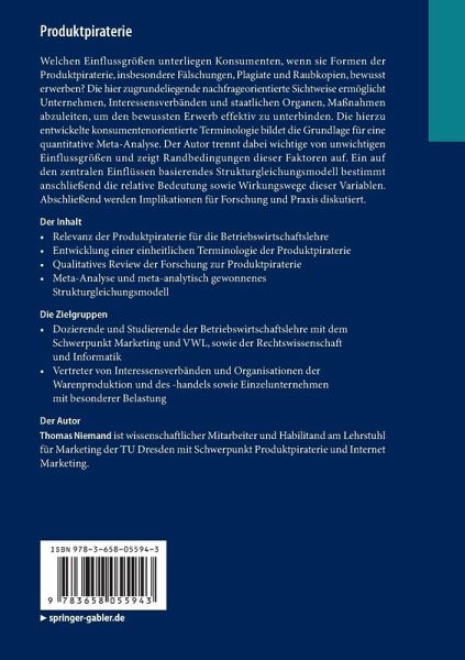 Welchen Einflussgrößen unterliegen Konsumenten, wenn sie Formen der Produktpiraterie, insbesondere Fälschungen, Plagiate und Raubkopien, bewusst erwerben? Die hier zugrundeliegende nachfrageorientierte Sichtweise ermöglicht Unternehmen, Interessensverbänden und staatlichen Organen, Maßnahmen abzuleiten, um den bewussten Erwerb effektiv zu unterbinden. Die hierzu entwickelte konsumentenorientierte Terminologie bildet die Grundlage für eine quantitative Meta-Analyse. Der Autor trennt dabei wichtige von unwichtigen Einflussgrößen und zeigt Randbedingungen dieser Faktoren auf. Ein auf den zentralen Einflüssen basierendes Strukturgleichungsmodell bestimmt anschließend die relative Bedeutung sowie Wirkungswege dieser Variablen. Abschließend werden Implikationen für Forschung und Praxis diskutiert.