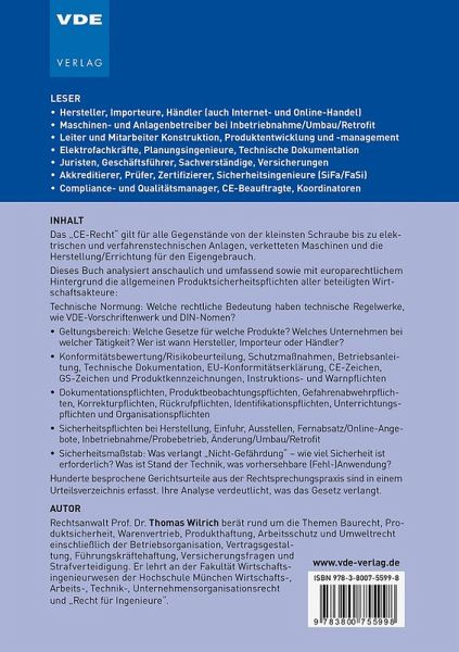 Das "CE-Recht" gilt für alle Gegenstände von der kleinsten Schraube bis zu elektrischen und verfahrenstechnischen Anlagen, verketteten Maschinen und die Herstellung/Errichtung für den Eigengebrauch.Dieses Buch analysiert anschaulich und umfassend sowie mit europarechtlichem Hintergrund die allgemeinen Produktsicherheitspflichten aller beteiligten Wirtschaftsakteure:- Geltungsbereich: Welche Gesetze für welche Produkte? Welches Unternehmen bei welcher Tätigkeit? Wer ist wann Hersteller, Importeur oder Händler?- Konformitätsbewertung/Risikobeurteilung, Schutzmaßnahmen, Betriebsanleitung Technische Dokumentation, EU-Konformitätserklärung, CE-Zeichen, GS-Zeichen und Produktkennzeichnungen, Instruktions- und Warnpflichten- Dokumentationspflichten, Produktbeobachtungspflichten, Gefahrenabwehrpflichten, Korrekturpflichten, Rückrufpflichten, Identifikationspflichten, Unterrichtungspflichten und Organisationspflichten- Sicherheitspflichten bei Herstellung, Einfuhr, Ausstellen, Fernabsatz/Online-Angebote, Inbetriebnahme/Probebetrieb, Änderung/Umbau/Retrofit- Sicherheitsmaßstab: Was verlangt "Nicht-Gefährdung" - wie viel Sicherheit ist erforderlich? Was ist Stand der Technik, was vorhersehbare (Fehl-)Anwendung?Hunderte besprochene Gerichtsurteile aus der Rechtsprechungspraxis sind in einem Urteilsverzeichnis erfasst. Ihre Analyse verdeutlicht, was das Gesetz verlangt.