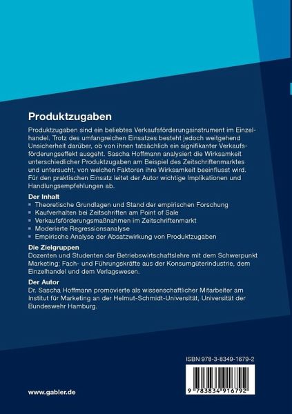 Produktzugaben sind ein beliebtes Verkaufsförderungsinstrument im Einzelhandel. Trotz des umfangreichen Einsatzes besteht jedoch weitgehend Unsicherheit darüber, ob von ihnen tatsächlich ein signifikanter Verkaufsförderungseffekt ausgeht. Sascha Hoffmann analysiert die Wirksamkeit unterschiedlicher Produktzugaben am Beispiel des Zeitschriftenmarktes und untersucht, von welchen Faktoren ihre Wirksamkeit beeinflusst wird. Für den praktischen Einsatz leitet der Autor wichtige Implikationen und Handlungsempfehlungen ab.
