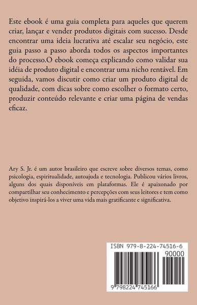 Este ebook é uma guia completa para aqueles que querem criar, lançar e vender produtos digitais com sucesso. Desde encontrar uma ideia lucrativa até escalar seu negócio, este guia passo a passo aborda todos os aspectos importantes do processo.O ebook começa explicando como validar sua idéia de produto digital e encontrar uma nicho rentável. Em seguida, vamos discutir como criar um produto digital de qualidade, com dicas sobre como escolher o formato certo, produzir conteúdo relevante e criar uma página de vendas eficaz.