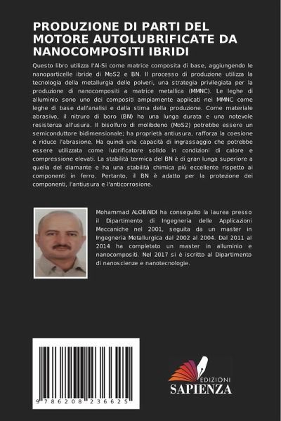 Questo libro utilizza l'Al-Si come matrice composita di base, aggiungendo le nanoparticelle ibride di MoS2 e BN. Il processo di produzione utilizza la tecnologia della metallurgia delle polveri, una strategia privilegiata per la produzione di nanocompositi a matrice metallica (MMNC). Le leghe di alluminio sono uno dei compositi ampiamente applicati nei MMNC come leghe di base dall'analisi e dalla stima della produzione. Come materiale abrasivo, il nitruro di boro (BN) ha una lunga durata e una notevole resistenza all'usura. Il bisolfuro di molibdeno (MoS2) potrebbe essere un semiconduttore bidimensionale; ha proprietà antiusura, rafforza la coesione e riduce l'abrasione. Ha quindi una capacità di ingrassaggio che potrebbe essere utilizzata come lubrificatore solido in condizioni di calore e compressione elevati. La stabilità termica del BN è di gran lunga superiore a quella del diamante e ha una stabilità chimica più eccellente rispetto ai componenti in ferro. Pertanto, il BN è adatto per la protezione dei componenti, l'antiusura e l'anticorrosione.