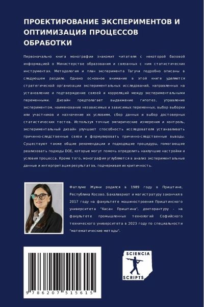 Perwonachal'no kniga monografii znakomit chitatelq s nekotoroj bazowoj informaciej o Ministerstwe obrazowaniq i swqzannyh s nim statisticheskih instrumentah. Metodologiq i plan äxperimenta Taguchi podrobno opisany w sleduüschem razdele. Odnako osnownoe wnimanie w ätoj knige udelqetsq strategicheskoj organizacii äxperimental'nyh issledowanij, naprawlennyh na ustanowlenie i podtwerzhdenie swqzej i korrelqcij mezhdu äxperimental'nymi peremennymi. Dizajn predpolagaet wydwizhenie gipotez, uprawlenie äxperimentom, naimenowanie nezawisimyh i zawisimyh peremennyh, wybor wyborki ili uchastnikow i naznachenie ih uslowiqm, sbor dannyh i wybor dostowernyh statisticheskih testow. Ispol'zuq tochnye ämpiricheskie izmereniq i kontrol', äxperimental'nyj dizajn uluchshaet sposobnost' issledowatelq ustanawliwat' prichinno-sledstwennye swqzi i formulirowat' prichinno-sledstwennye wywody. Suschestwuüt takzhe obschie rekomendacii i podhodqschie procedury, pomogaüschie realizowat' podhody DOE, kotorye mogut pomoch' opredelit' nailuchshie nastrojki i uslowiq processa. Krome togo, monografiq uglublqetsq w analiz äxperimental'nye dannye i interpretaciq rezul'tatow, podcherkiwaq ih kritichnost'.
