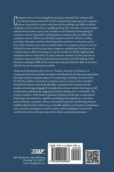 Computer science is increasingly becoming an essential 21st century skill. As school systems around the world recognize the importance of computer science, demand for teachers who have the knowledge and skills to deliver computer science instruction is rapidly growing. Yet a number of recent studies indicate that teachers report low confidence and limited understanding of computer science, frequently confusing basic computer literacy skills with computer science. This is true for both teachers at the K-8 level as well as secondary education teachers who frequently transition to computer science from other content areas, such as mathematics. As computer science is not yet included in most teacher preparation programs, professional development is a critical step in efforts to prepare in-service teachers to deliver high-quality computer science instruction. To date, however, research on best practices in computer science professional development has been severely lacking in the literature, making it difficult for researchers and practitioners alike to examine effective in-service preparation models. This book provide examples of professional development approaches that help teachers integrate aspects of computing in existing curricula at the K-8 level or deliver stand-alone computer science courses at the secondary school level. Further, this book identifies computational competencies for teachers, promising pedagogical strategies that advance teacher learning, as well as alternative pathways for ongoing learning including micro-credentials. The primary audience of the book is graduate students and faculty in educational technology, educational or cognitive psychology, learning theory, curriculum and instruction, computer science, instructional systems and learning sciences. Additionally, the book will serve as a valuable addition to education practitioners and curriculum developers as well as policy makers looking to increase the number of teachers who are prepared to deliver computing education.