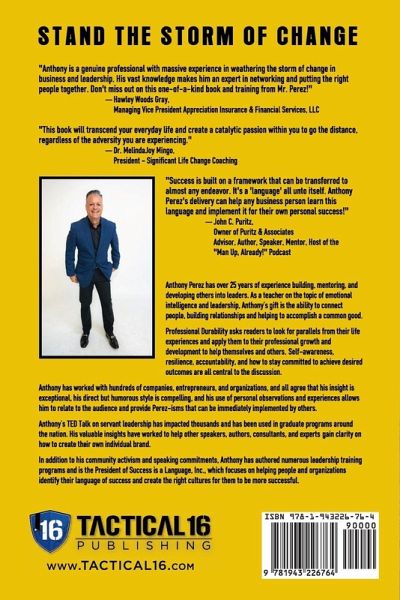 In his well-known direct, but humorous style, Perez uses personal antidotes and applications to relay vital information to both new and seasoned leaders looking for a fresh approach. "The way to protect ourselves from the constant storm of change is to ensure that we are being proactive in developing our professional durability," said Perez, an entrepreneur and mentor for over 25 years. "We need to make sure that as leaders we are not only socially and emotionally stable to withstand the storm, but that we are teaching our people how to become mentally and emotionally durable as well." Teaching others about emotional intelligence and leadership are passions of Perez, who has impacted thousands with his Ted talk on servant leadership, currently used in graduate programs nationwide. In his new book, the author asks readers to look for parallels from their life experiences and apply them to their professional growth and development to help themselves and others. Self-awareness, resilience, accountability, and how to stay committed to achieve desired outcomes are central to the discussion.