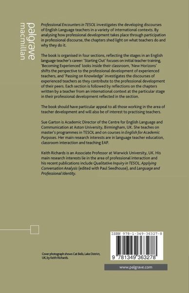 Notes On Contributors Introduction: S.Garton & K.Richards PART 1: STARTING OUT Deconstructing the Discourse: Understanding the Trainer's Talk; F.Copland The Design of Post-Observation Feedback; N.K.Hooton Learning to Talk the Talk: Conversation Analysis as a Tool for Induction of Trainee Teachers; P.Seedhouse Reflections on Starting Out; Wei Liu PART 2: BECOMING EXPERIENCED Teacher Beliefs and Interaction in the Language Classroom; S.Garton Teachers Being Observed: Coming to Terms with Classroom Appraisal; A.Howard Going Outside the Classroom; M.Morris-Adams Reflections on Becoming Experienced; M.Tarnpichprasert PART 3: NEW HORIZONS Supporting Teacher Development on the Web; P.Quirke Dialogic Features of Exploratory Research Talk; S.Mann Making the Break: Establishing a New School; K.Richards Reflections on New Horizons; J.Talandis Jr. PART 4: PASSING ON THE KNOWLEDGE Developing as a Professional in Cameroon: Challenges and Visions; K.Kuchah Becoming a Writer: Community Membership and Discursive Literacy; S.Wharton Discourses in Search of Coherence: A TESOL Autobiography; J.Edge Reflections on Passing on the Knowledge; F.V. Kuloheri Index