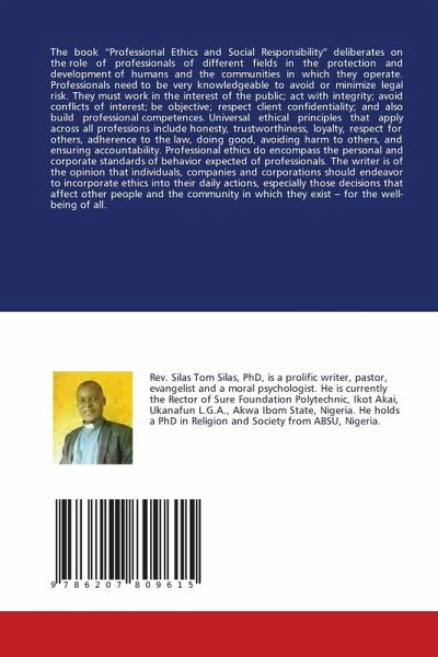 The book "Professional Ethics and Social Responsibility" deliberates on the role of professionals of different fields in the protection and development of humans and the communities in which they operate. Professionals need to be very knowledgeable to avoid or minimize legal risk. They must work in the interest of the public; act with integrity; avoid conflicts of interest; be objective; respect client confidentiality; and also build professional competences. Universal ethical principles that apply across all professions include honesty, trustworthiness, loyalty, respect for others, adherence to the law, doing good, avoiding harm to others, and ensuring accountability. Professional ethics do encompass the personal and corporate standards of behavior expected of professionals. The writer is of the opinion that individuals, companies and corporations should endeavor to incorporate ethics into their daily actions, especially those decisions that affect other people and the communityin which they exist - for the well-being of all.