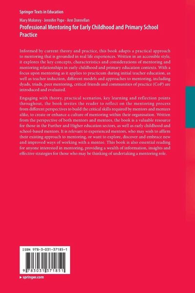 Engaging with theory, practical scenarios, key learning and reflection points throughout, the book invites the reader to reflect on the mentoring process from different perspectives to build the critical skills required by mentors and mentees alike, to create or enhance a culture of mentoring within their organisation. Written from the perspective of both mentors and mentees, the book is a valuable resource for those in the Further and Higher education sectors, as well as early childhood and school-based mentors. It is relevant to experienced mentors, who may wish to affirm their existing approach to mentoring, or want to explore, discover and embrace new and improved ways of working with a mentee. This book is also essential reading for anyone interested in mentoring, providing a wealth of information, insights and effective strategies for those who may be thinking of undertaking a mentoring role.