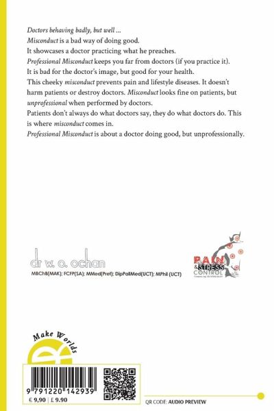 Doctors behaving badly, but well ... Misconduct is a bad way of doing good. It showcases a doctor practicing what he preaches. Professional Misconduct keeps you far from doctors (if you practice it). It is bad for the doctor's image, but good for your health. This cheeky misconduct prevents pain and lifestyle diseases. It doesn't harm patients or destroy doctors. Misconduct looks fine on patients, but unprofessional when performed by doctors. Patients don't always do what doctors say, they do what doctors do. This is where misconduct comes in. Professional Misconduct is about a doctor doing good, but unprofessionally.