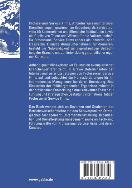 Professional Service Firms, Anbieter wissensintensiver Dienstleistungen, gewinnen an Bedeutung als Serviceprovider für Unternehmen und öffentliche Institutionen sowie als Quelle von Talent und Wissen für die Volkswirtschaft. Da Professional Service Firms anders als Industrie- oder klassische Dienstleistungsunternehmen funktionieren, besteht die Notwendigkeit zur eigenständigen Betrachtung der Branche und zur Entwicklung ganzheitlicher eigener Konzepte.