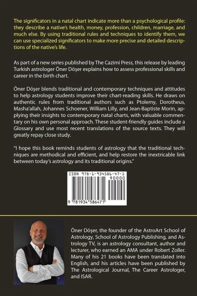 This new release by leading Turkish astrologer Oner Doser explains how to assess professional skills and career in the birth chart. Blending authentic traditional rules with a contemporary approach, Doser draws on famous astrologers such as Ptolemy, Dorotheus, Firmicus Maternus, Bonatti, Schoener, and William Lilly to guide the student in this important part of chart interpretation. Topics covered include the the "trade planets" (Mercury, Venus, Mars), relationships to the Sun and angularity, signs on the MC, Lots of profession and the Lot of Fortune, decision procedures for judging the significators, example charts, lists of professions assigned to the signs and planets, and more. This valuable manual supports the many courses offered by the AstroArt Astrology School in Istanbul, and is the first American edition. It is edited with a preface by leading astrological translator Benjamin Dykes.