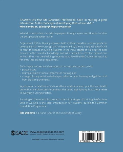 "Students will find Rita Debnath's Professional Skills in Nursing a great introduction to the challenges of developing their clinical skills." - Mike Parkinson, Edinburgh Napier University What do I need to learn in order to progress through my course? How do I achieve the best possible patient-care? Professional Skills for Nurses answers both of these questions and supports the development of key nursing skills underpinned by theory. Designed specifically to meet the needs of nursing students in the initial stages of training, the book focuses on the essential knowledge and skills needed for effective patient-care while at the same time helping students to achieve the NMC outcomes required for entry into branch programmes. Each chapter focuses on a key aspect of nursing care backed up with - practical tips, - examples drawn from all branches of nursing, and - a range of study activities to help you reflect on your learning and get the most from practice placements. Key themes in healthcare such as ethics, evidence-based practice and health promotion are discussed throughout the book, highlighting how these relate to everyday nursing practice. Focusing on the core skills covered in the initial stages of training, Professional Skills in Nursing is the ideal introduction for students during the Common Foundation Programme.