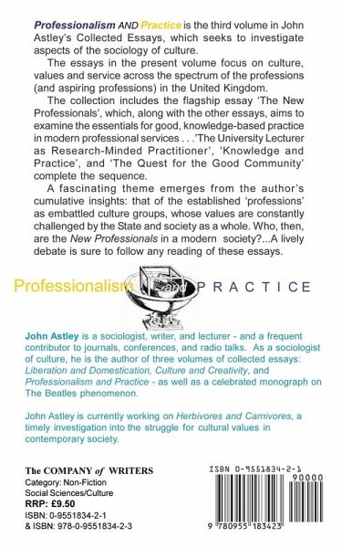 Professionalism and Practice is the third volume in John Astley's Collected Essays, which seeks to investigate aspects of the sociology of culture. The essays in the present volume focus on culture, values and service across the spectrum of professions (and aspiring professions) in the United Kingdom. The collection includes the flagship essay 'The New Professionals', which, along with the other essays, aims to examine the essentials for good, knowledge-based practice in modern professional services . . ."The University Lecturer as Research-Minded Practitioner', 'Knowledge and Practice', and 'The Quest for the Good Community' complete the sequence. A fascinating theme emerges from the author's cumulative insights: that of 'the professions' as embattled culture groups, whose values are constantly challenged by the State and society as a whole. . .A lively debate is sure to follow any reading of these essays. * John Astley is a sociologist, writer, and lecturer - and a frequent contributor to journals, conferences, and radio talks. As a sociologist of culture, he is the author of three volumes of collected essays: Liberation and Domestication, Culture and Creativity, and Professionalism and Practice - as well as a celebrated monograph on The Beatles. John Astley is currently working on Herbivores and Carnivores, a timely investigation into the struggle for cultural values in contemporary society.