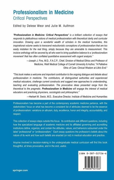 "This text presents an interesting counterpoint to the body of perceived wisdom on professionalism. ... The volume is most effective when it offers practical solutions to the current problems that they posit are facing the construct of professionalism and its delivery to medical students." (Alice Z. Frohna, Journal of the American Medical Association, Vol. 297 (19), 2007)