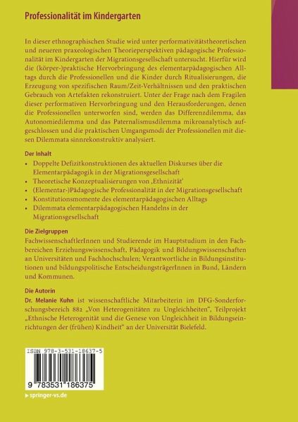 In dieser ethnographischen Studie wird unter performativitätstheoretischen und neueren praxeologischen Theorieperspektiven pädagogische Professionalität im Kindergarten der Migrationsgesellschaft untersucht. Hierfür wird die (körper-)praktische Hervorbringung des elementarpädagogischen Alltags durch die Professionellen und die Kinder durch Ritualisierungen, die Erzeugung von spezifischen Raum/Zeit-Verhältnissen und den praktischen Gebrauch von Artefakten rekonstruiert. Unter der Frage nach dem Fragilen dieser performativen Hervorbringung und den Herausforderungen, denen die Professionellen unterworfen sind, werden das Differenzdilemma, das Autonomiedilemma und das Paternalismusdilemma mikroanalytisch aufgeschlossen und die praktischen Umgangsmodi der Professionellen mit diesen Dilemmata sinnrekonstruktiv analysiert.