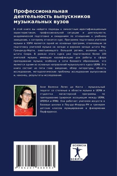 V ätoj knige wy najdete podhody k lichnostnym identifikacionnym harakteristikam, professional'noj situacii i deqtel'nosti, akademicheskoj podgotowke i ozhidaniqm po otnosheniü k uchebnomu zawedeniü, k kotoromu otnositsq kurs. Programma podgotowki uchitelej muzyki w UJeRN qwlqetsq odnoj iz osnownyh programm, otwechaüschih za podgotowku uchitelej muzyki na zapade i werhnem zapade shtata Riu-Grandi-du-Norti, ohwatywaüschego bol'shoj region, wklüchaq chast' shtata Seara. V ramkah ätogo kursa uzhe podgotowleno bolee 100 uchitelej muzyki, imeüschih kwalifikaciü dlq raboty w sfere prepodawaniq muzyki, osobenno w seti bazowogo obrazowaniq, chto qwlqetsq odnim iz osnownyh naprawlenij muzykal'nogo kursa UERN. Jeta kniga sostoit iz pqti glaw: wwedenie, obzor literatury, oblast' issledowaniq, metodologicheskie problemy issledowaniq wypusknikow i, nakonec, rezul'taty issledowaniq.