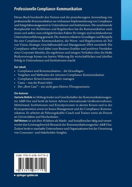 Compliance und Kommunikation - die Grundlagen.- Cases - was die Praxis lehrt.- Methodische Grundlagen der internen Compliance-Kommunikation.- Compliance-Krisen kommunikativ managen.- Der "Best Case" - ein nicht ganz fiktives Übungsszenario.