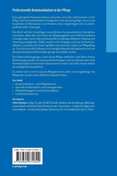 Den Rahmenbedingungen, unter denen Pflege stattfindet, wird dabei ebenso Beachtung geschenkt, wie neueren Entwicklungen rund um Sprache oder auch Interkulturalität; als besonders chancenreich erweist sich dabei immer wieder dieanaloge Kommunikation.