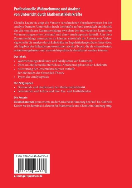 Claudia Lazarevic zeigt die Varianz verschiedener Vorgehensweisen bei der Analyse fremden Unterrichts durch Lehrkräfte auf und entwickelt ein Modell, das die komplexen Zusammenhänge zwischen den individuellen kognitiven Voraussetzungen einer Lehrkraft und deren Analysepraxis darstellt. Um diese Zusammenhänge untersuchen zu können, entwickelt die Autorin eine Videovignette für die Analyse durch Lehrkräfte im Zuge leitfadengestützter Interviews. Als Ergebnis der Fallanalysen rekonstruiert sie drei Typen, die als wissensbasiert, orientierungsbasiert und unterrichtspraktisch klassifiziert werden können.