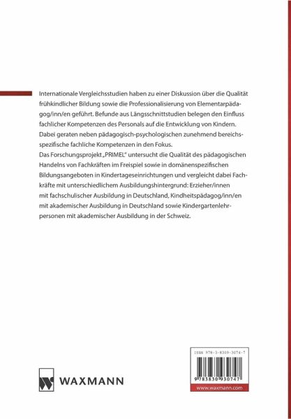 Internationale Vergleichsstudien haben zu einer Diskussion über die Qualität frühkindlicher Bildung sowie die Professionalisierung von Elementarpädagog/inn/en geführt. Befunde aus Längsschnittstudien belegen den Einfluss fachlicher Kompetenzen des Personals auf die Entwicklung von Kindern, dabei geraten neben pädagogisch-psychologischen zunehmend bereichsspezifische fachliche Kompetenzen in den Fokus.