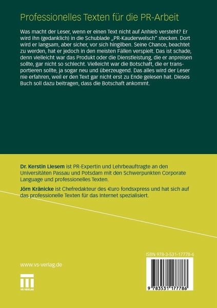 Was macht der Leser, wenn er einen Text nicht auf Anhieb versteht? Er wird ihn (gedanklich) in die Schublade "PR-Kauderwelsch" stecken. Dort wird er langsam, aber sicher, vor sich hin gilben. Seine Chance, beachtet zu werden, hat er jedoch in den meisten Fällen verspielt. Das ist schade, denn vielleicht war das Produkt oder die Dienstleistung, die er anpreisen sollte, gar nicht so schlecht. Vielleicht war die Botschaft, die er transportieren sollte, ja sogar neu und überzeugend. Das alles wird der Leser nie erfahren, weil er den Text gar nicht erst zu Ende gelesen hat. Dieses Buch soll dazu beitragen, dass die Botschaft ankommt.