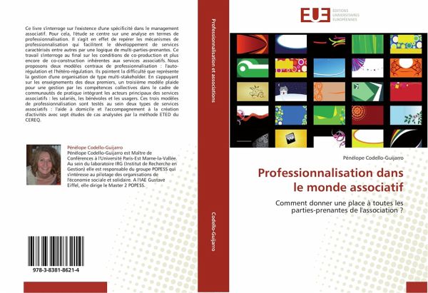 Ce livre s'interroge sur l'existence d'une spécificité dans le management associatif. Pour cela, l'étude se centre sur une analyse en termes de professionnalisation. Il s'agit en effet de repérer les mécanismes de professionnalisation qui facilitent le développement de services caractérisés entre autres par une logique de multi-parties-prenantes. Ce travail s'interroge au final sur les conditions de co-production et plus encore de co-construction inhérentes aux services associatifs. Nous proposons deux modèles centraux de professionnalisation : l'auto-régulation et l'hétéro-régulation. Ils pointent la difficulté que représente la gestion d'une organisation de type multi-stakeholder. En s'appuyant sur les enseignements des deux premiers, un troisième modèle plaide pour une gestion par les compétences collectives dans le cadre de communautés de pratique intégrant les acteurs principaux des services associatifs : les salariés, les bénévoles et les usagers. Ces trois modèles de professionnalisation sont testés au sein deux types de services associatifs : l'aide à domicile et l'accompagnement à la création d'activités avec sept études de cas analysées par la méthode ETED du CEREQ.
