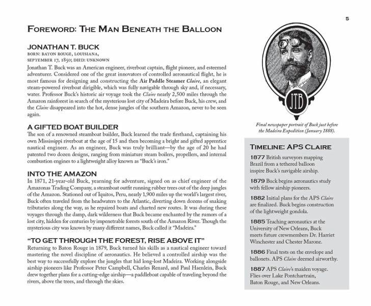 At the end of the 19th century, a brilliant inventor, Professor Jonathan T. Buck, crafted a beautiful steam-powered airship for an expedition to South America's Amazon River Basin in search of a magnificent lost city - hidden from terrestrial explorers for centuries by its surrounding dense forests. But something mysterious happened in the heart of the jungle - Buck, his crew and the Air Paddle Steamer Claire vanished. More than a century later, an expedition sent to look for any trace of the Claire vanished and its crew discovered a single, discarded trunk lodged high in the forest canopy.…mehr