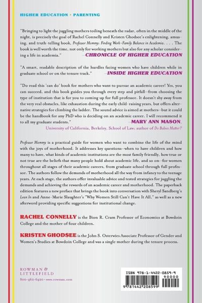 Professor Mommy is designed as a guide for women who want to combine the life of the mind with the joys of motherhood. The book provides practical suggestions from the authors' experiences together with those of other women who have successfully combined parenting with professorships. Professor Mommy addresses key questions-when to have children and how many, what kinds of academic institutions are the most family friendly, how to negotiate around the myths that many people hold about academic life, etc.-for women throughout all stages of their academic careers, from graduate school through full professor. The authors follow the demands of motherhood all the way from the infant stages through the empty nest. At each stage, the authors offer invaluable advice and tested strategies from women who have successfully juggled the demands and rewards of an academic career and motherhood. Written in clear, jargon-free prose, the book is accessible to women in all disciplines, with concise chapters for the time-constrained academic. The book's conversational tone is supplemented with a review of the most current scholarship on work/family balance and a survey of emerging family-friendly practices at U.S. colleges and universities. Professor Mommy asserts that the faculty mother has become and will remain a permanent fixture on the landscape of the American academy.The paperback edition features a new Preface that addresses the public conversation about mothers and work raised in Sheryl Sandberg's Lean In and Anne-Marie Slaughter's Why Women Still Can't Have it All. The new Preface also answers frequently asked questions from readers. The paperback edition features a new preface that brings the book into conversation with Sheryl Sandberg's Lean In and Anne-Marie Slaughter's "Why Women Still Can't Have It All," as well as a new afterword providing specific suggestions for institutional change.