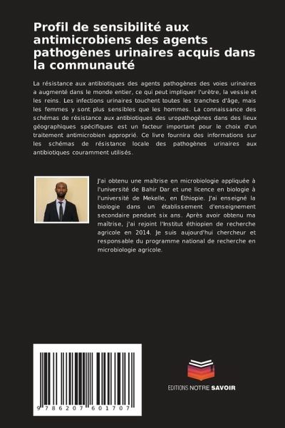 La résistance aux antibiotiques des agents pathogènes des voies urinaires a augmenté dans le monde entier, ce qui peut impliquer l'urètre, la vessie et les reins. Les infections urinaires touchent toutes les tranches d'âge, mais les femmes y sont plus sensibles que les hommes. La connaissance des schémas de résistance aux antibiotiques des uropathogènes dans des lieux géographiques spécifiques est un facteur important pour le choix d'un traitement antimicrobien approprié. Ce livre fournira des informations sur les schémas de résistance locale des pathogènes urinaires aux antibiotiques couramment utilisés.