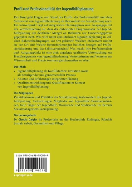 Der Band geht Fragen zum Stand des Profils, der Professionalität und dem Stellenwert von Jugendhilfeplanung als Bestandteil von Sozialplanung nach. Ein Schwerpunkt liegt auf integrierten Planungsprozessen. Ausgangspunkt der Veröffentlichung ist, dass der elaborierten Programmatik zur Jugendhilfeplanung ein deutlicher Mangel an Befunden zur Umsetzungspraxis gegenüber steht. Was wird unter dem Stichwort Jugendhilfeplanung in welchen Rahmenbedingungen vor Ort geleistet? Welchen Stellenwert nimmt sie vor Ort ein? Welche Herausforderungen bestehen bezogen auf Professionalisierung und das Selbstverständnis? Was macht ihre Professionalität aus? Ausgangspunkt ist eine breit angelegte qualitative Untersuchung zur Handlungspraxis von Jugendhilfeplanung. Vertreterinnen und Vertreter aus Wissenschaft und Praxis kommen gleichermaßen zu Wort.