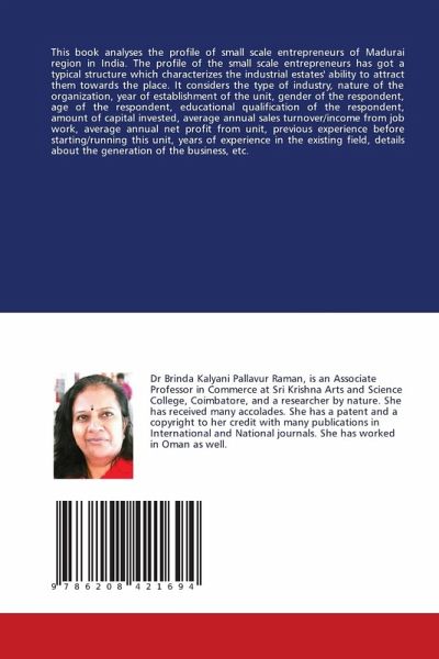 This book analyses the profile of small scale entrepreneurs of Madurai region in India. The profile of the small scale entrepreneurs has got a typical structure which characterizes the industrial estates' ability to attract them towards the place. It considers the type of industry, nature of the organization, year of establishment of the unit, gender of the respondent, age of the respondent, educational qualification of the respondent, amount of capital invested, average annual sales turnover/income from job work, average annual net profit from unit, previous experience before starting/running this unit, years of experience in the existing field, details about the generation of the business, etc.