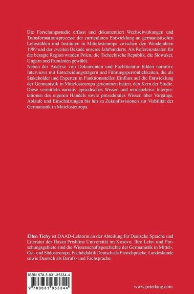 Die Forschungsstudie erfasst und dokumentiert Wechselwirkungen und Transformationsprozesse der curricularen Entwicklung an germanistischen Lehrstühlen und Instituten in Mittelosteuropa zwischen den Wendejahren 1989 und der zweiten Dekade unseres Jahrhunderts. Als Referenzstaaten für die besagte Region wurden Polen, die Tschechische Republik, die Slowakei, Ungarn und Rumänien gewählt.