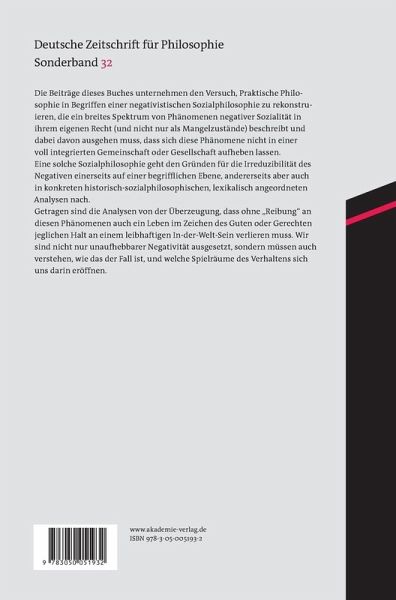 Die Beiträge dieses Buches unternehmen den Versuch, Praktische Philosophie in Begriffen einer negativistischen Sozialphilosophie zu rekonstruieren, die ein breites Spektrum von Phänomenen negativer Sozialität in ihrem eigenen Recht (und nicht nur als Mangelzustände) beschreibt und dabei davon ausgehen muss, dass sich diese Phänomene nicht in einer voll integrierten Gemeinschaft oder Gesellschaft aufheben lassen. Eine solche Sozialphilosophie geht den Gründen für die Irreduziblität des Negativen einerseits auf einer begrifflichen Ebene, andererseits aber auch in konkreten historisch-sozialphilosophischen, lexikalisch angeordneten Analysen nach. Getragen sind die Analysen von der Überzeugung, dass ohne "Reibung" an diesen Phänomenen auch ein Leben im Zeichen des Guten oder Gerechten jeglichen Halt an einem leibhaftigen In-der-Welt-Sein verlieren muss. Wir sind nicht nur unaufhebbarer Negativität ausgesetzt, sondern müssen auch verstehen, wie das der Fall ist, und welche Spielräume des Verhaltens sich uns darin eröffnen.