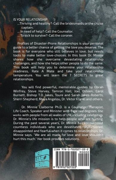 Profiles of Disaster-Prone Relationships is your personal guide to a better chance of getting the love you deserve. In this book, Dr. Minnie shares how she overcame devastating relationship challenges and how she helps other people to do the same. This book will challenge you to be your best self so that you can make wiser love choices. You will learn the seven secrets to a great relationship. Dr. Minnie includes powerful, memorable quotes by Oprah Winfrey, Steve Harvey, Tamron Hall, Joel Osteen, Carol Burnett, Bishop T.D. Jakes, Touré, Sarah Jakes-Roberts, Sherri Shepherd, Maya Angelou, Dr. Viktor Frankl, and others.