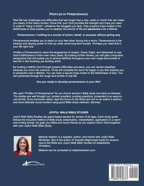 Has something made you upset, nervous, or put you in a panic mode? Do you feel like you will never make it through the difficulties you are facing? Here's the truth: To survive the ups and downs of life, God wants you to have something called perseverance. In Profiles of Perseverance, you will get a glimpse into the lives of Joseph, David, Elijah, and Nehemiah who learned perseverance through many challenges. The 11 lessons and matching podcasts will help you to see that only a sustained hope rooted in the faithfulness of God enables you to persevere through your challenges. By trusting a faithful God through present difficulties and pains, you can remain steadfast because you know the outcome. Christ will complete the work He began in you that enables you to persevere over a lifetime. You can have a secure hope rooted in the faithfulness of God. You can persevere through the rough-and-tumble of real life. You will learn how to follow four action steps to get there. Are you ready to develop perseverance in your life? Work through this study and fill your heart with hope in God's faithfulness to you.